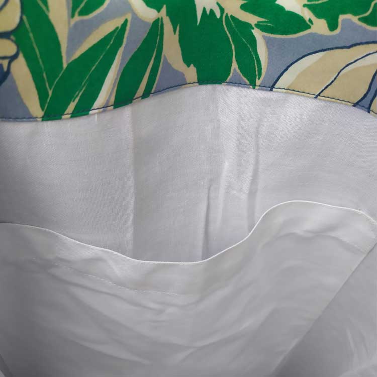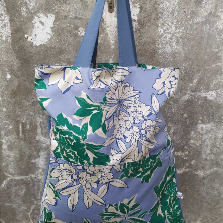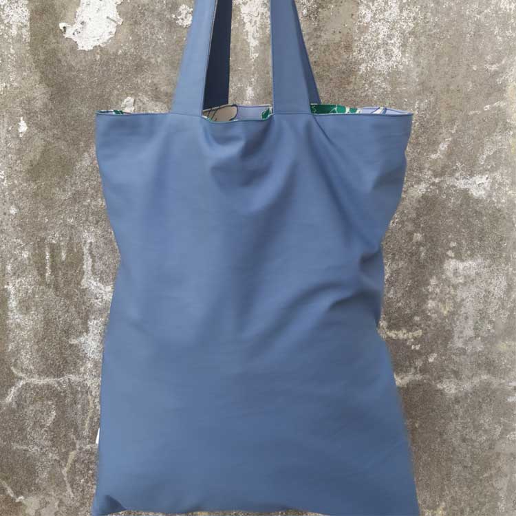 Com alças reforçadas da cor tecido que podem ser usadas com o comprimento de ombro.