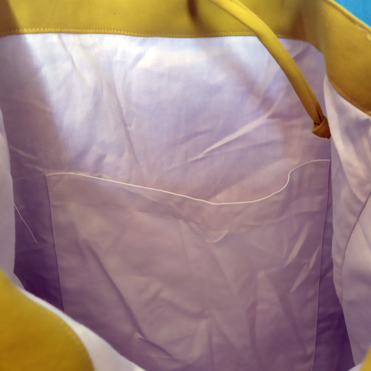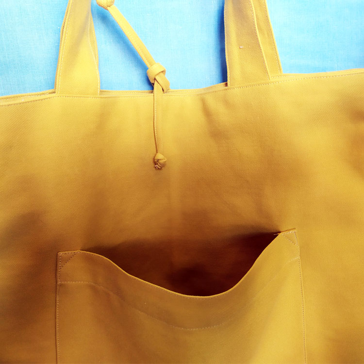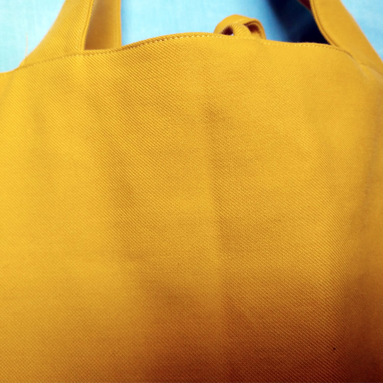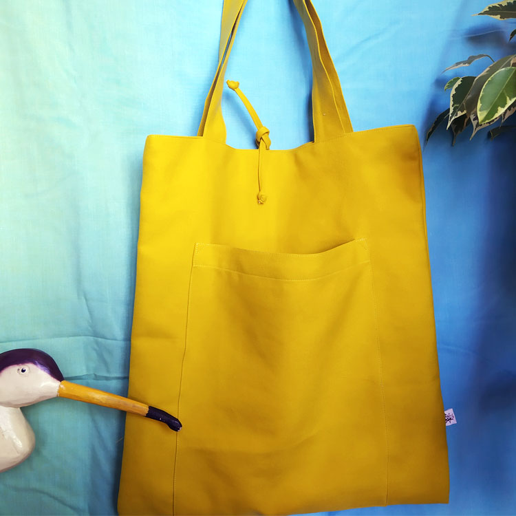 Com alças reforçadas da cor tecido que podem ser usadas com o comprimento de ombro.